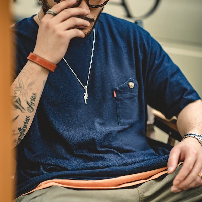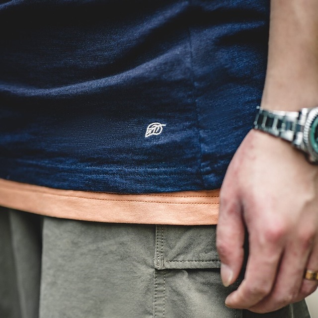 インディゴでしか味わえない色味・変化をお楽しみ下さい。刺繍の「葉っぱ」も新鮮さを与えます。しなやかさと耐久性を両立させたコットン生地。吸汗性と速乾性に優れ、夏の時期はもちろん、季節を問わず快適に着用が可能なのが嬉しいポイントです。